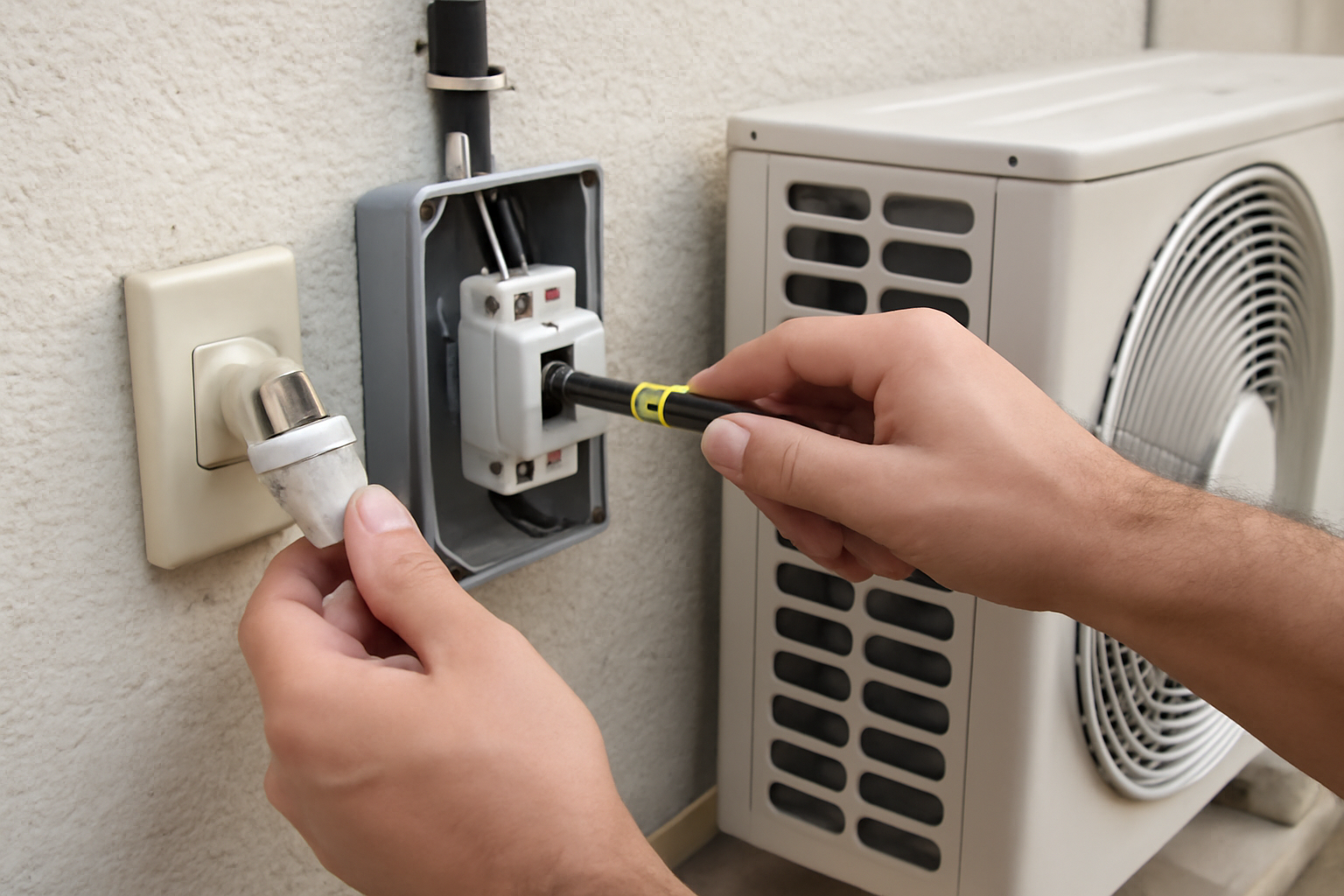 실외기 전원은 실외기 옆 콘센트나 전기 차단기 박스를 통해 확인할 수 있으며, 일부 모델은 실내 차단기함에서 분리되어 있을 수 있습니다.