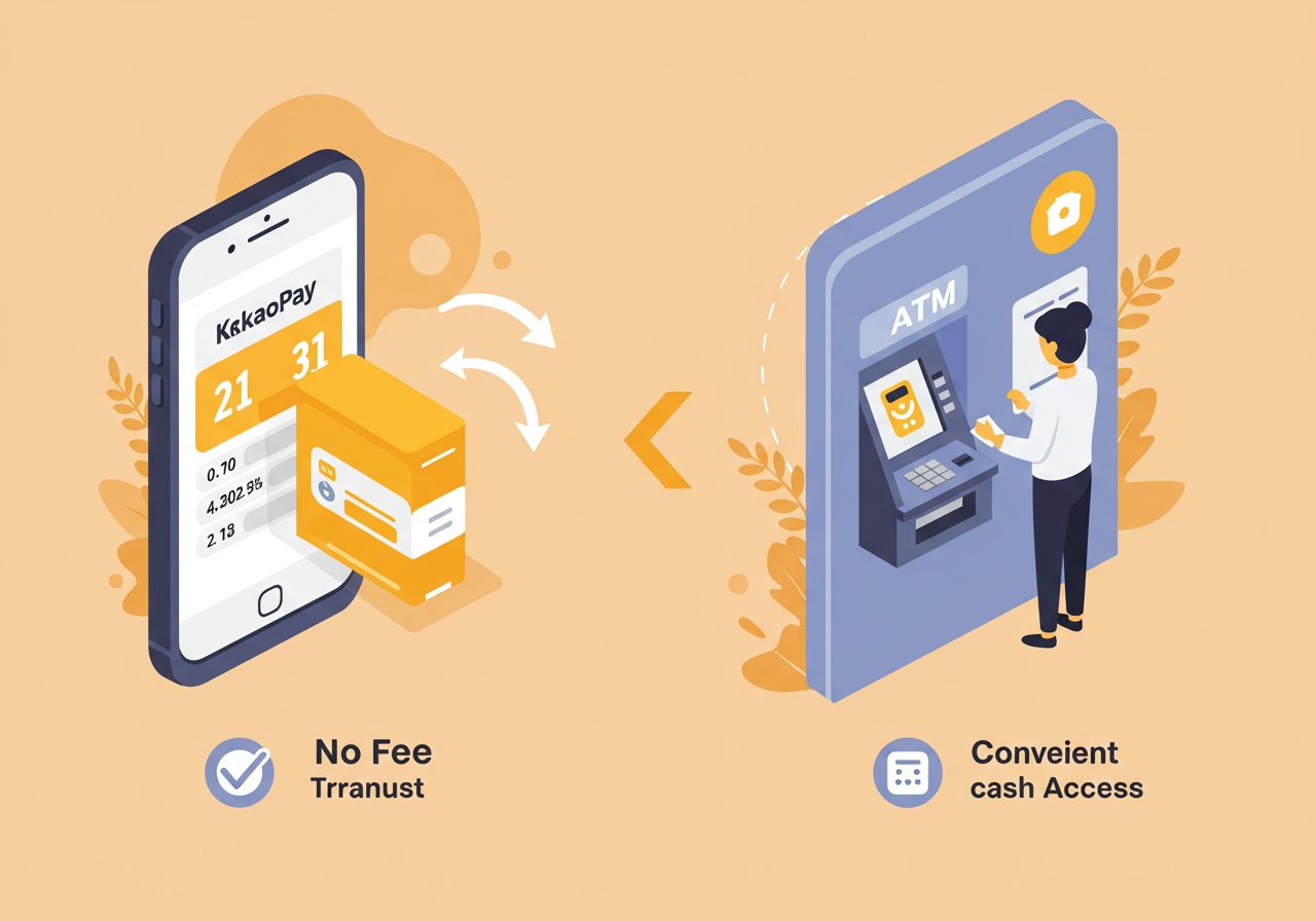 카카오페이의 출금은 간편하게 계좌 이체로 할 수도 있고, 카드 없이 ATM에서 현금으로도 찾을 수 있습니다. 아래에서 방법과 수수료, 한도를 확인해 보세요.