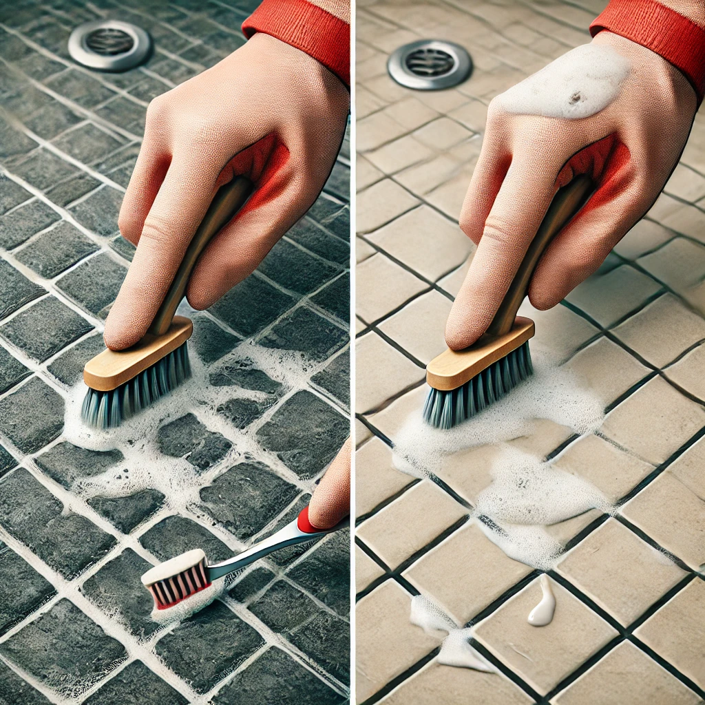 - 바닥 타일: 베이킹소다와 물을 섞어 만든 페이스트를 타일 사이에 바르고 칫솔로 문지른 뒤 물로 헹굽니다.